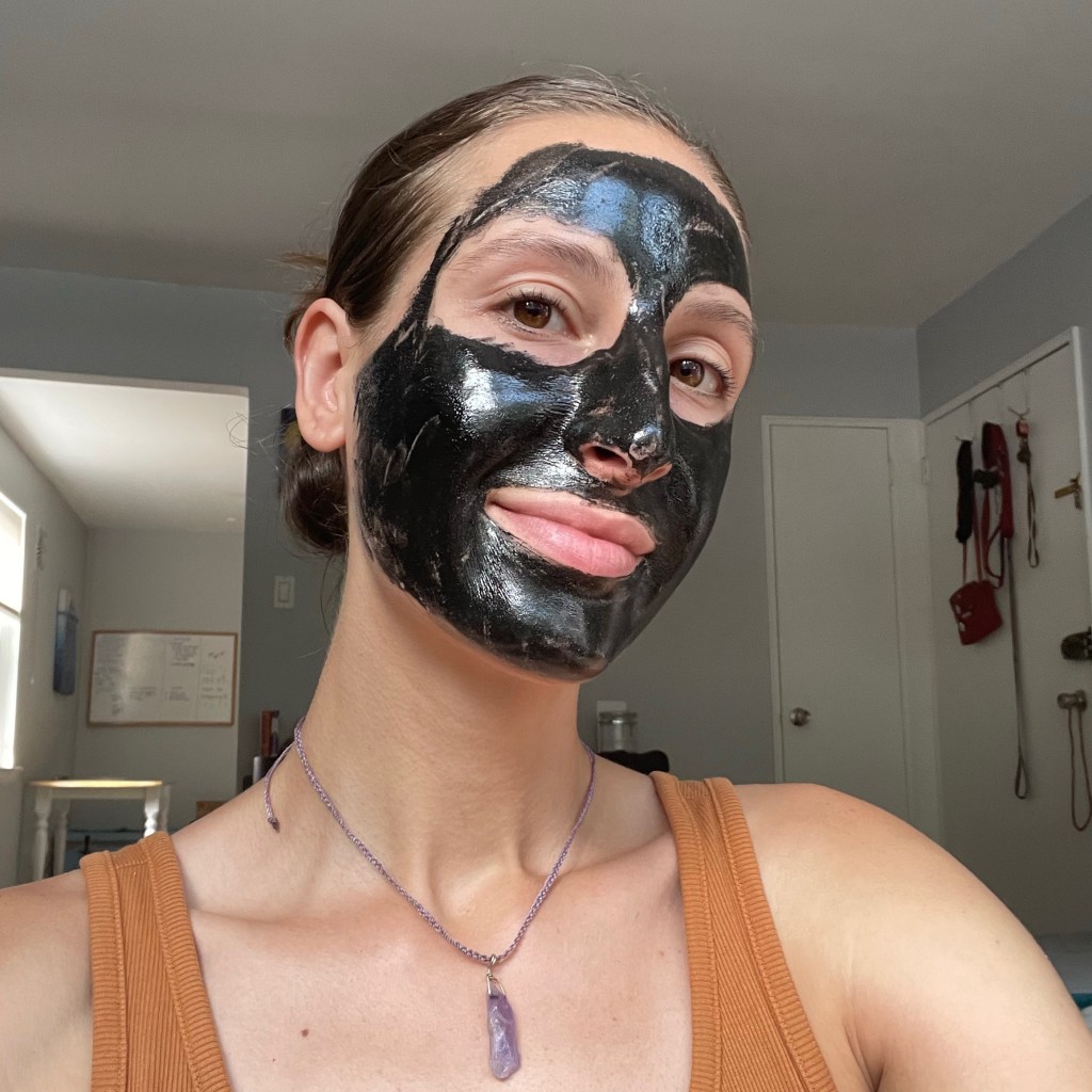 I’m obsessed with this peel off charcoal mask I got from Amazon recently.